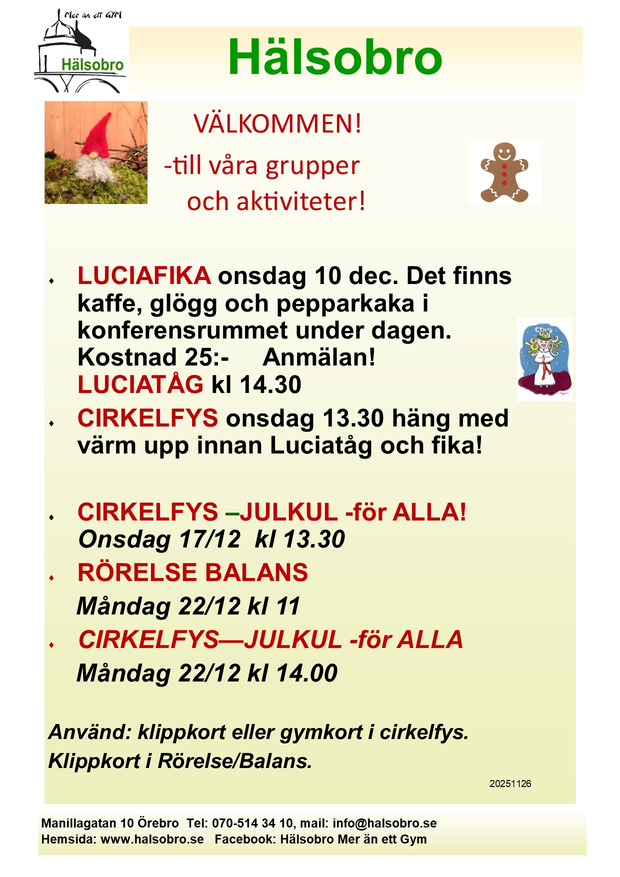 Dag före afton & helgdag stänger Hälsobro kl.12.00